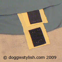 Ahora es el momento de añadir la cinta de velcro a las correas del vientre. Pone su traje fuera plana y extienda las correas plano hacia fuera. Tomar la circunferencia del pecho, añadir 2 pulgadas y mida de las correas del vientre. Para Jersey me mide 32 pulgadas. Hacer marcas y cortar a la tela sobrante. Un buen tres pulgadas de velcro y fije a lados opuestos de las correas. Puede grapar o coser, es su opción. Si vas a la grapa, recuerda que los extremos curvados de las grapas deben ir en los laterales "pegajosos" del velcro.