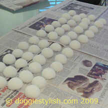 Repartidos de periódicos sobre una superficie plana y coloque las bolas de espuma en ella, plano lateral hacia abajo.