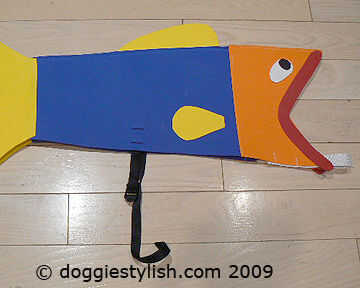 Con la cerradura de la cuerda se corte las correas, la una pieza 3" o 4" de cinta que tiene la cerradura de la cuerda unida a él y a prender. Tomar el resto de las correas, cortar una longitud adecuada para su perro y en su lugar en el lado opuesto del traje.