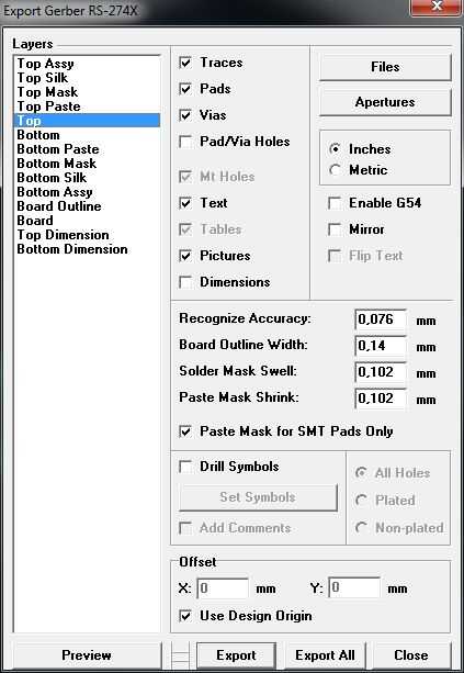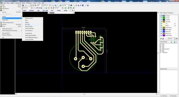 Seleccione la Capa superior y haga clic en exportar eligió sí utilizar las aberturas automáticamente y guardar el archivo, por ejemplo. "Top.gbr"