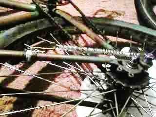 P.d.: si está utilizando una estructura sin modificar y un estilo cassette, esto debería funcionar bien. Si está utilizando un engranaje (y espaciadores de la solo-velocidad) que no está cerca del lado derecho del cuerpo del buje, que tendrás que instalar esto para que el perno se instala por el exterior de la suspensión del derailleur, y el tensor es interior! Puede colocar el resorte retén por lo tanto, por lo que la primavera va a la izquierda de la cadena lateral de la unidad de alojarte. Lo mismo va para el uso de una BMX rueda libre sobre un cubo hecho de un hilo en varias velocidades de rueda libre, a menos que usted vuelva a espacio el eje para mover la cáscara del cubo derecho y volver a plato. Luego la Asamblea que se muestra más arriba debería funcionar bien. Tienes muchas opciones que no requieren compresión de su marco.