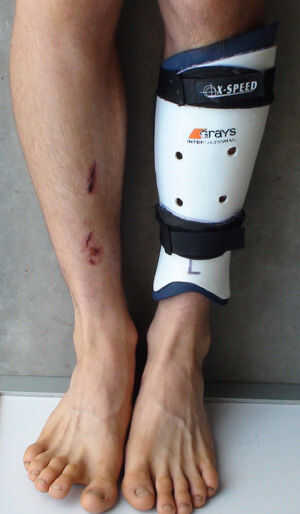 Mi problema principal era que pastillas de hockey se significan para ser usado bajo la ropa y a veces en el BMX todo lo que tienes que cubrir tus espinillas son calcetines largos así que tuve que hacer por lo menos una correa superior ~ decidí ir el cerdo entero y poner las tiras en ambos espinilleras.