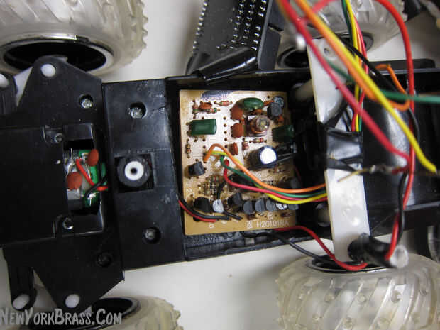 De repente se me ocurrió que casi cualquier coche de juguete RC podría estar utilizando este o similar arquitectura. Abrí 4 coches RC que fueron donados al proyecto y de hecho todos usan más o menos la misma configuración: todos estos autos tienen 2 puentes de H en un tablero pequeño montado en el interior. Casi todos los coches hoy en día utilizan una variación en el RX2C juguete coche chip (enlace) (es decir, clavijas 6,7,10,11 son los drivers para el puente de H) y estas juntas pueden aceptar niveles de tensión lógica independientemente de la tensión de la batería. Las tablas que no usan el chip tendrá generalmente una placa hija equivalente que llene la misma función. Por otra parte-las juntas están optimizadas para los motores de los coches de forma óptima. Contrario el artículo son seguros para girar en ambos lados del puente H al mismo tiempo por error - todo lo que hacen es encender el modo de frenado.