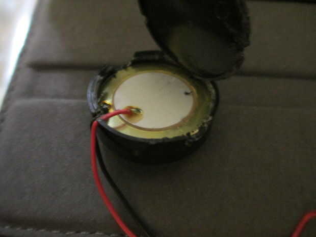 con cuidado romper las lengüetas de tornillo en el lado, utilizando un destornillador pequeño o un disco pequeño, abrir la parte superior. (ser muy cuidado de no tirar de los cables o cortar). cuidadosamente baje el piezo. (hay un agujero en el otro lado cual si utilizas un objeto pequeño le permitirá empujar el piezo a salir más fácil).