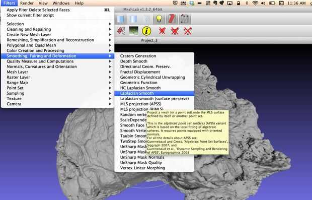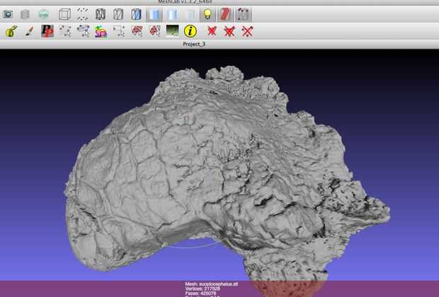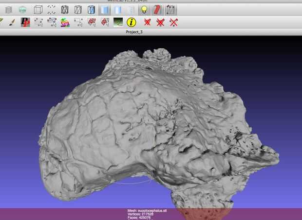 Usted notará que hay algunos pedacitos sueltos flotando alrededor, y que la textura del modelo parece reflejar la resolución de la exploración (sensible como una especie de efecto escalera-caminar).
