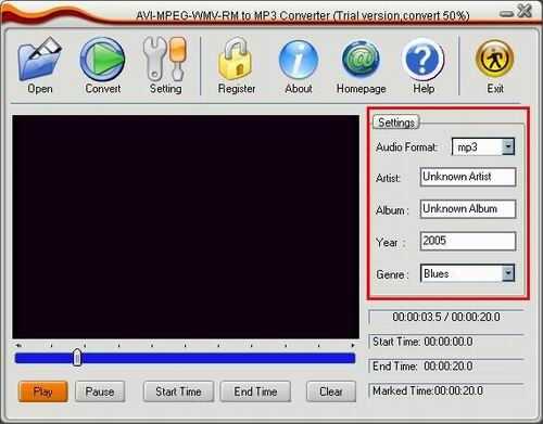 http://www.pophosting.net ) AVI MPEG WMV RM to MP3 Converter - Video to Audio Converter, RM to MP3 WAV Converter. AVI MPEG WMV RM to MP3 Converter es una potente herramienta para convertir todos los archivos de vídeo y audio a formatos MP3, WAV, WMA y OGG. Soporta AVI, MPEG, RM/RMVB, WMV/ASF, MOV videos y formatos de audio. Es muy útil para aquellas personas que desean extrat audio desde archivos de vídeo o convierten RM a MP3/WAV formato. Soporta dividir una parte del flujo de audio. Con un pequeño reproductor de vídeo integrado, puede establecer empezar-tiempo/final tiempo justo cuando la escucha previa del archivo. Tiene usuario-firenldy y fácil de usar interfaz. Conversión de alta precisión y ninguna calidad se pierde! AVI a MP3, AVI a AVI WAV a WMA AVI a MPEG OGG a MP3 MPEG a MPEG WAV a WMA MPEG a WMV de OGG a MP3, WMV a WAV WMV a WMV WMA a OGG RM to MP3 RM a RM WAV a RM WMA a OGG características: extraer audio de archivos de vídeo. Dividir una parte del archivo de vídeo a archivo de audio. Soporta los formatos AVI (DivX, XviD, MPEG4...). Soporta MPEG I / II, VCD(.dat), DVD(.vob) formatos. Soporta WMV, ASF formatos. Soporta RM, RMVB formatos. Compatible con MOV, QT formatos. Soporta RM, MP3, WMA, OGG, formatos de audio etc. Todos los formatos a MP3. Todos los formatos a WAV. Todos los formatos en WMA. Todos los formatos OGG. Archivo video grande apoyo, incluso grandes y 2GB. Muy rápido y sin pérdida de calidad. Interfaz muy fácil de usar.