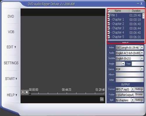 iSofter DVD Audio Ripper Deluxe - DVD con soportes de reproducción, usted puede rasgar cualquier cosa como quieras, no hay ningún archivo temporal necesario. También soporta DVD multi-ángulo y copes con estos capítulos de múltiples ángulos de manera correcta. Con soportes de tecnología nueva, funciona bien y rápido con todo tipo de DVD. El producto de software es una solución ideal de la música de ripeo DVD, película antigua y convertir DVD a mp3. Usted puede escuchar tus películas favoritas en tu iPod!