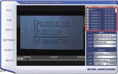 Vob archivos se visualizará en la ventana de lista de capítulo. Puede mover a la columna de nombre de salida, haga clic en botón derecho del ratón para cambiar el nombre de archivo de salida.