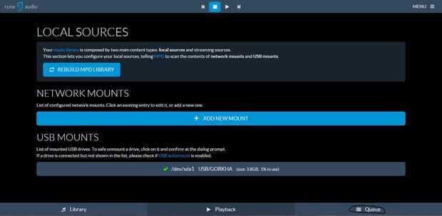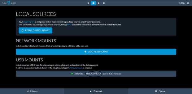 5. ahora verá el nombre de pendrive USB detectado por el RuneAudio