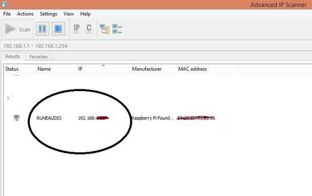 2. verás una dirección IP correspondiente a RUNEAUDIO. Tome nota de él.