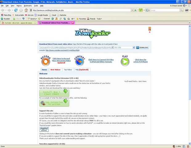 Ahora necesitas descargar la. Archivo de video flash FLV. Hay muchas maneras de hacerlo pero yo sólo uso este. Funciona bien. Qué es primero abrir el video de su elección en Mozilla FireFox (ya que Firefox es el mejor). A continuación, puede hace una ficha nueva (Control + T) y vaya a este enlace. Desde ese sitio pegan en tu dirección de URL de videos y haga clic en descargar. Desde allí obtendrá un archivo para descargar.
