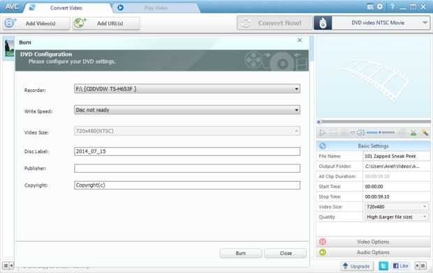 Inserte un disco DVD en blanco y seleccione grabador de la lista desplegable, introduzca su etiqueta de disco deseado y haz clic en el botón "Grabar" para comenzar a quemar video en DVD.