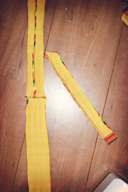 Para formar las correas, dobla cada tira de tela por el centro, cerrar costados uno frente al otro y coser los bordes libres y la parte inferior derecho. Había hecho de un tubo largo de cada manga y utiliza un pincho que me ayude a salir del lado derecho trasero de tubos.