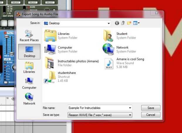 El nombre al archivo y guárdelo como un wav en el escritorio.