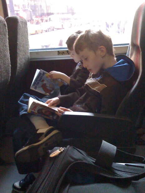 Siempre que deje la casa, traer un par de libros. Los niños leerán en el coche, autobús o metro. Se leen mientras esperan en línea en el supermercado o cuando Haz medido para un traje. Donde estás, lo que estás haciendo se lea si sólo les mano un libro (y no hay nada más que hacer).