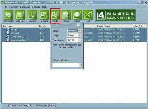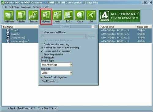 4Musics MP3 to WMA Converter - ¿qué es un MP3? MP3 significa MPEG 1 (Motion Picture Experts Group) de capa 3. El poder de los archivos MP3 se encuentra en su capacidad para almacenar música y audio utilizando considerablemente menos memoria que otros formatos. Tamaños de archivo más pequeños traducen para descargas más rápidas y menos requisitos de almacenamiento de información costoso, lo que permite almacenar y reproducir MP3s con hardware a un precio razonable. Todo esto equivale a una manera más flexible y asequible de distribución, gestión y escuchando música.