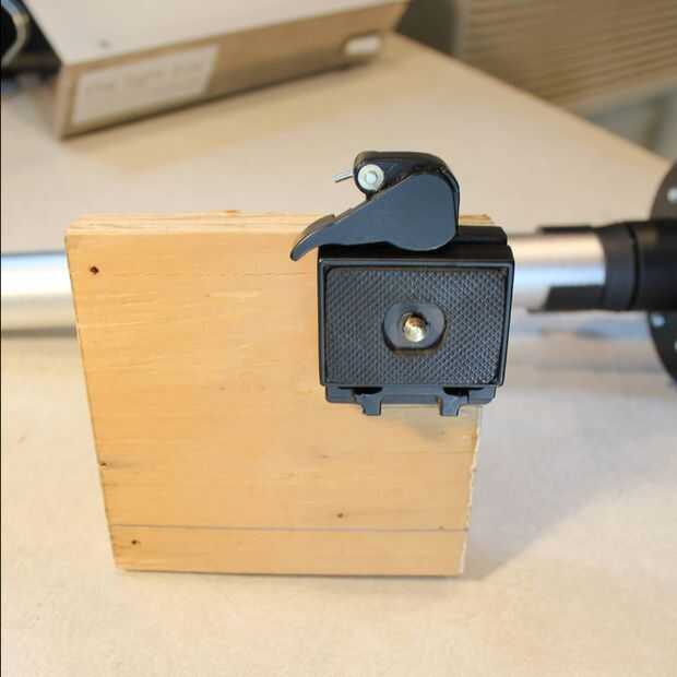 3. Conecte una cámara de placa a la madera de desconexión rápida. Asegúrese de que el mecanismo de liberación rápida es apagado al lado de la madera.
