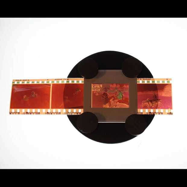 6. poner imanes en las esquinas del marco de diapositiva a sostenedor de la tira de negativos de película plana.