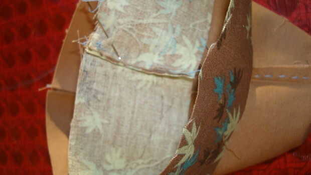 Baje un borde pequeño y doblar otra vez un poco más grande y cose el dobladillo acabado como se muestra.