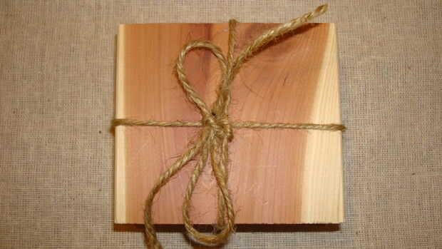 Corte 2 pedazos de yute o de cinta de 32 pulgadas de largo.