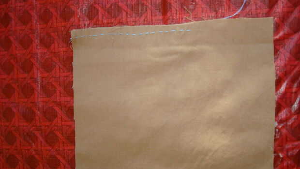 Prender esta tira la bolsa en la parte superior y coser a la bolsa como se muestra en la imagen. Asegúrese de que la costura está clavada en el centro de la espalda de la bolsa.