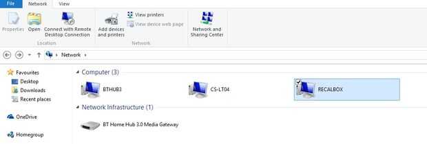 Abrir la pestaña de red en su pc y usted debe ver su PI bajo el nombre 'RECALBOX', haga doble clic en él.