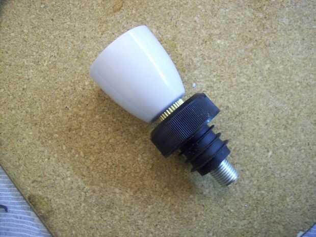 Conjunto de sabio es bastante simple, perfore un orificio de 10mm en la tapa y utilizar una tuerca para apretar contra la instalación de la lámpara luego añado un tapón de la botella modificado o un sello de óptica como en la imagen.