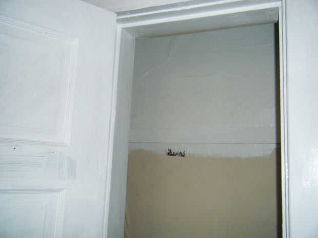 Nuestro condominio tenía los estantes de alambre blanco terrible, al parecer dispuestos a minimizar el área útil de almacenamiento del armario de la habitación. Para nuestro regalo de vacaciones para nosotros este año, decidí convertir el armario a m