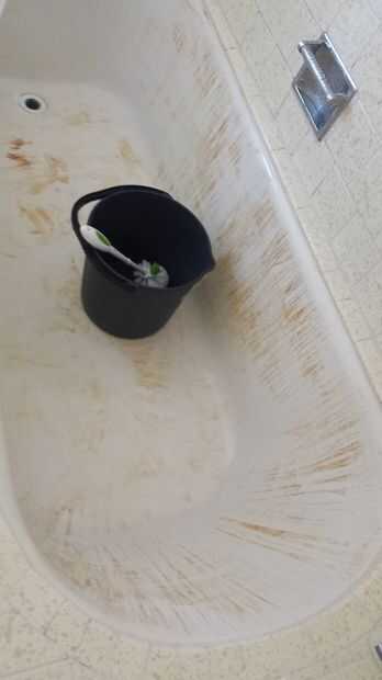Esto funciona mejor en una tina relativamente seca. Mi bañera estaba un poco mojado en lugares de todo el pánico, pero los puntos de agua actúa como un neutralizante (diluir el peróxido), tan húmedo requerirá peróxido más para el mismo efecto.