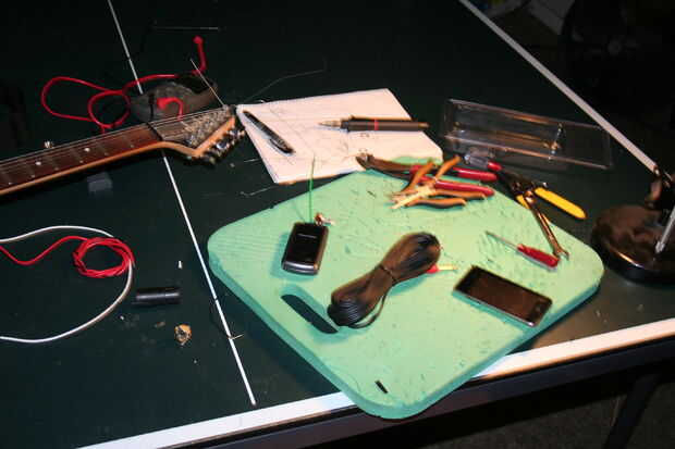Personalizar una guitarra, con toboganes de agua. (o cómo convertir una guitarra acústica gratis algo que puede sentirse orgulloso de jam con)