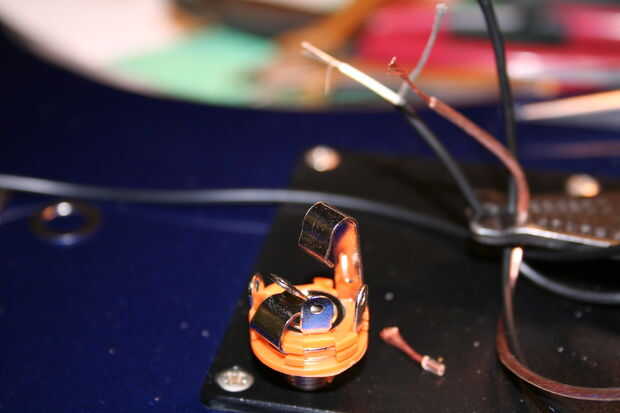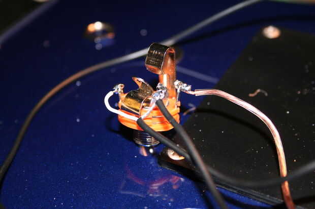 después de todos los cables que utiliza toman en cable como aquel que soldado de la salida de la nueva perilla vol y luego soldar ese cable anillo o Punta tengo mina unido al anillo no importa aunque