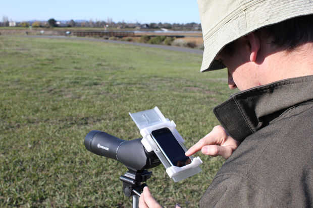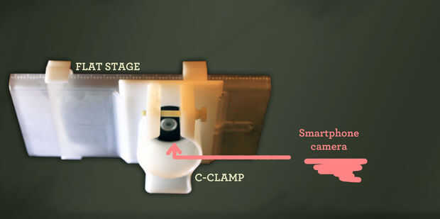 3. Conecte el teléfono inteligente a la etapa plana para que la cámara está centrada sobre el ocular