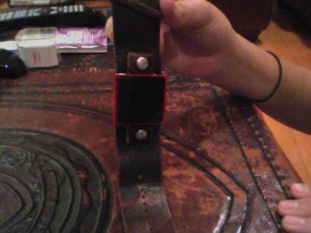 cómo convertir tu ipod en un reloj?Paso 1:Para hacer este reloj necesita lo siguiente:-Ipod Nano 6g-Correa-gancho y lazo-CuchilloPaso 2: -Cortar el cinturón de 5cm más grande que la muñeca-Cortar 2 agujeros de 3cm de largo en el medio de la correa-Co