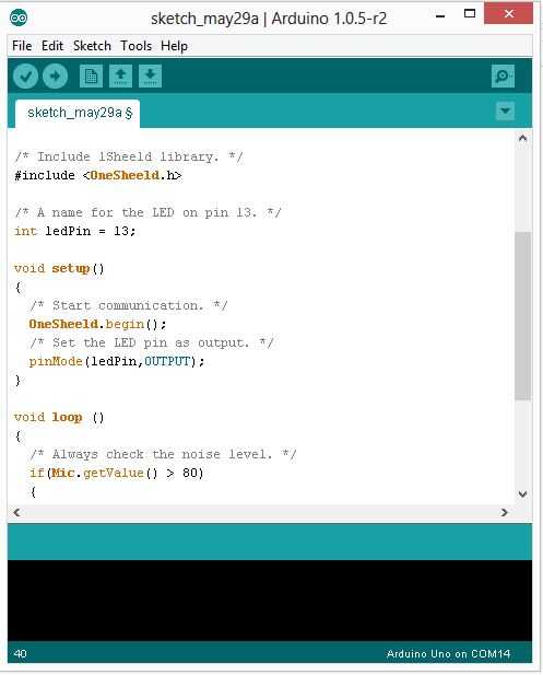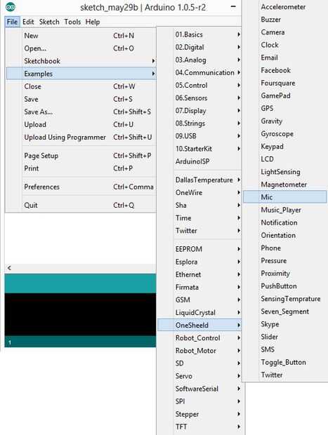 Descargar biblioteca de 1Sheeld en la carpeta de bibliotecas en el IDE de Arduino, o utilizar el IDE de Arduino en línea: Codebender.