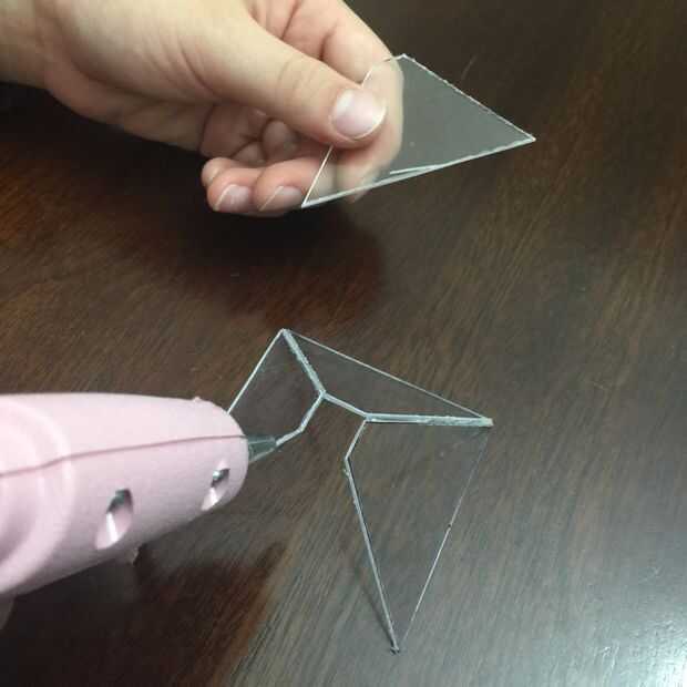 Colocar en un patrón donde los lados pequeños se arreglan en un cuadrado. Entonces cinta o pegamento caliente, pero aconsejo pegar caliente para una mejor calidad.
