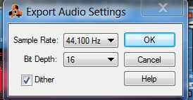 conjunto de exportación de audio a 44.100 Hz y 16 bits Pulse ok