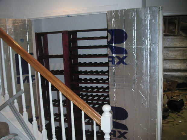 Una cosa en cuenta: no lo hizo cortar los tableros de aislamiento del mismo tamaño exacto que las puertas del armario. Puedes ver que he dejado una superposición de 1/2" sobre una puerta. Lo hice para quitar el espacio entre las puertas cuando están cerradas. No sé si esto debería funcionar en el momento, pero ahora parece ser lo correcto. Después de agregar algunos burletes, parece ser casi hermético. Lo malo es que debo abrir primero la puerta derecha.