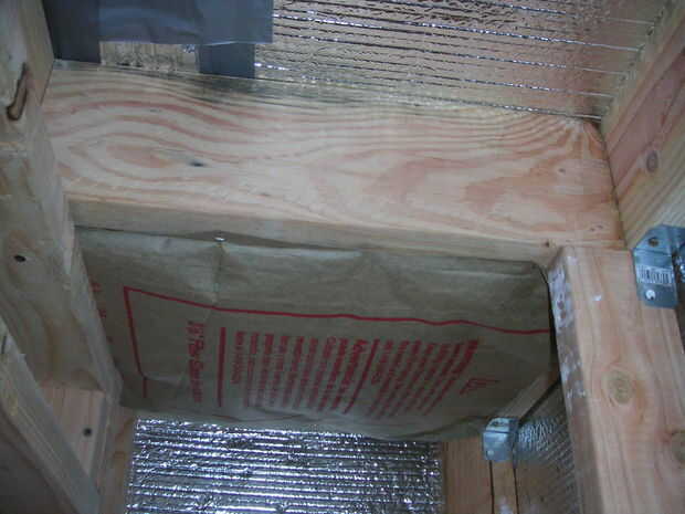Porque yo estaba usando dos capas de aislamiento, coloqué el papel kraft uno frente a otro, por lo que las dos piezas de fibra de vidrio tocaron mutuamente sin ninguna interferencia.