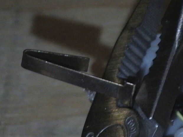 a continuación tienes que poner en el foco de luz. Pero antes de hacerlo, necesitará recortar la punta de cobre restante, para que el cilindro negro puede caber en su lugar. Asegúrese de dejar la screwhole en la punta, por lo que se puede atornillar en su lugar.