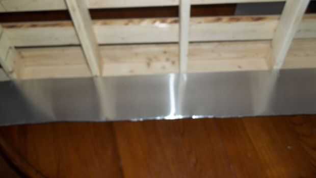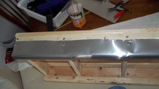 Utilicé una pistola de grapas de potencia para sujetar el metal a los corredores. He puesto el borde desenrollado dentro y el borde enrollado hacia el exterior. Lentamente dobla el metal alrededor de la parte inferior del corredor y el tornillo en su lugar. Es útil tener a alguien ayudar a sostener mientras tornillo o usar una pinza.