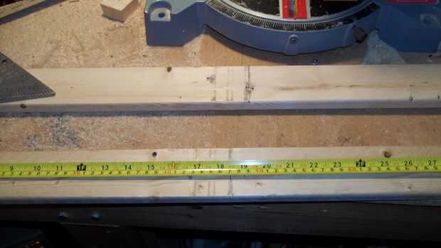 I medir y cortar las piezas de apoyo. Opté por 12" de cada soporte.