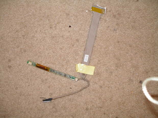 Aquí está una foto del cable LVDS y el inversor de la pantalla LCD. Ya que va a comprar un tablero de control de LCD estos cables no se necesitará otra vez.