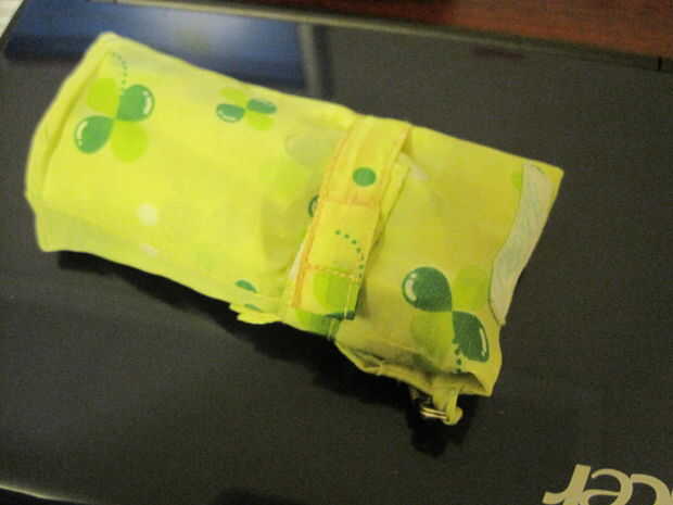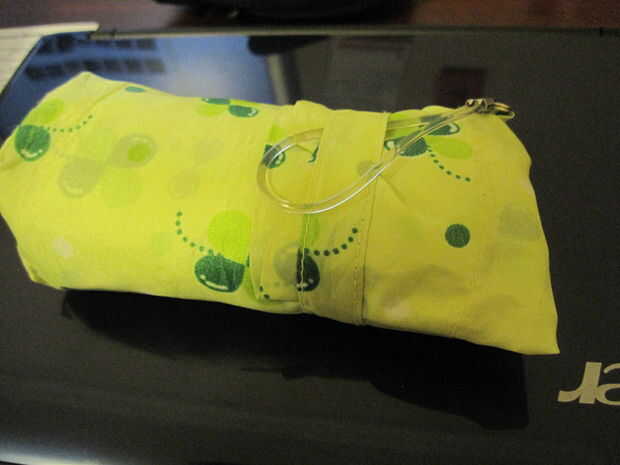 También se utiliza la correa de Velcro ahorré antes para amarrar todo. Mi paraguas también tenían una correa de plástico celular y salvó así.