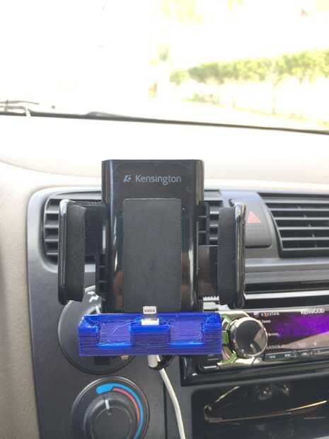 montajes de Smartphone son frescos y baratos, pero usar GPS y corriente de la música mientras yo estoy manejando, que significa una batería descargada a menos que conecte en todo momento. Además realmente no quería la cáscara a una tonelada de dinero para el appleware "oficial". Así que decidí hacer uno yo mismo, puesto que ya tenía la montura y sólo necesita a 3D imprimir un pequeño soporte para el cable de carga para convertirlo en un muelle. En mi caso, lo hice en Techshop!
