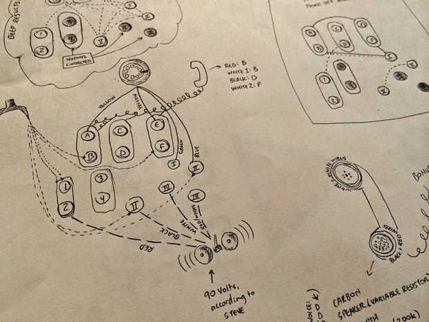 Que cables conectan los dispositivos, que puntos de contacto un pitido cuando el teléfono está "encendido" el gancho y que un pitido cuando está apagada.