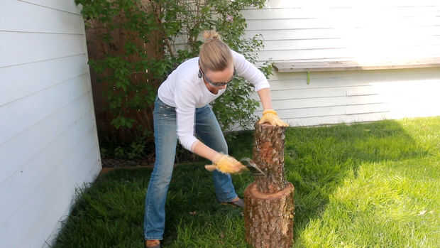 Asegúrese de que su registro o la madera es relativamente recta. Empezar con quitar la corteza. Usé un hacha pequeña para este trabajo, que afilé primero. Tomé mi tiempo y mantenido para picar a la corteza. Utilicé madera nogal para madera, y también había un montón de albura que tuvieron que ser quitados con el fin de llegar a la parte de color nogal oscuro.