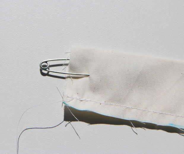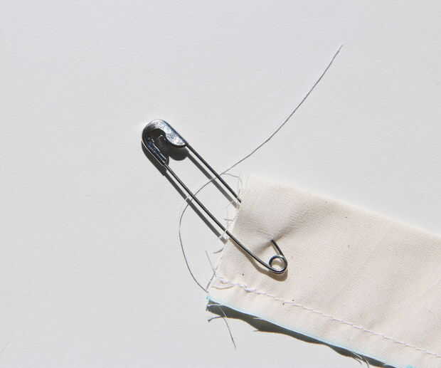 Vuelta el pin por lo que es la cabeza de él dentro de la tela.