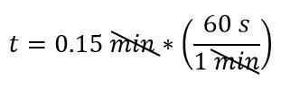 El valor final de esta conversión debe expresarse en unidades de segundos. Para lograr esto, usted debe cancelar las unidades viejas (minutos). En su papel, tache las unidades viejas para que quede solo la unidad de segundos.