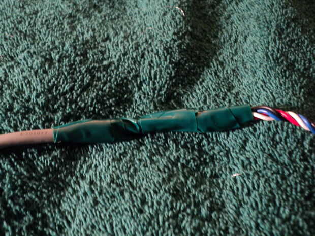 Ahora individualmente debe cinta negro conexiones y las conexiones de red. Entonces usted debe cubrir de una capa de cinta aislante como se muestra. Si quieres un look más limpio, puede utilizar envoltorio sobre los cables individualmente en lugar de cinta.