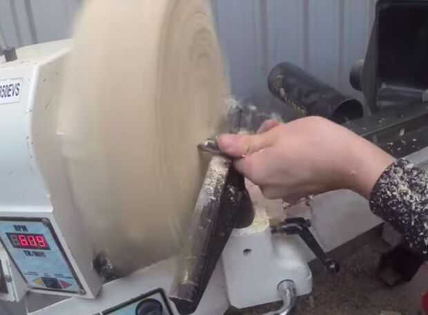 Con el espacio en blanco montado me volví el torno a 600 rpm para encontrar la velocidad que suba la velocidad hasta el torno comienza a vibrar y gire hacia abajo de una fracción a partir de ahí. Luego nivelar la cara por lo que es plano. Tienes que cortar un poco porque el 4 x 2 se han redondeado los bordes que hay que recortar.